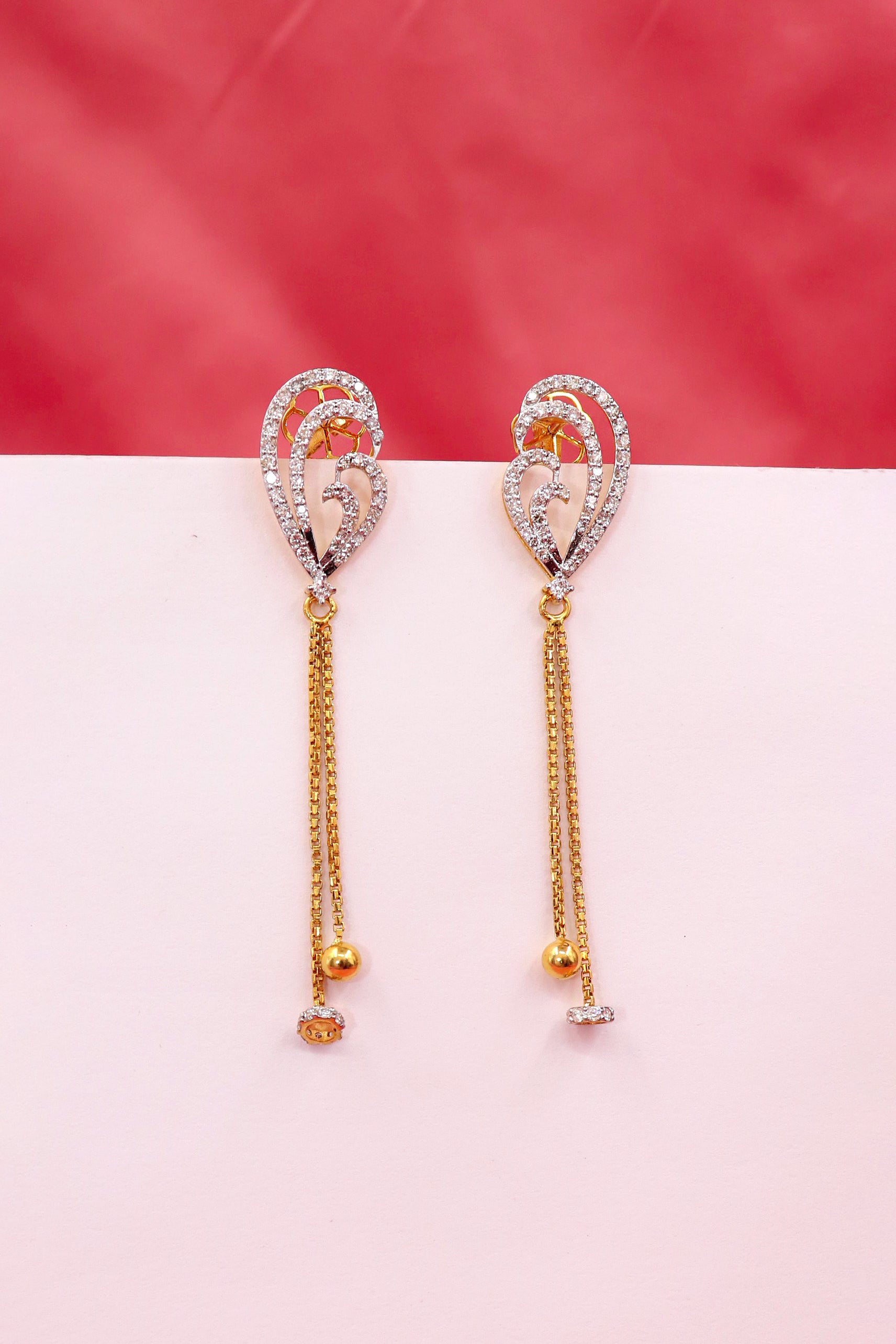 Sophisticated Diamond Gold Elongated Drop Earrings