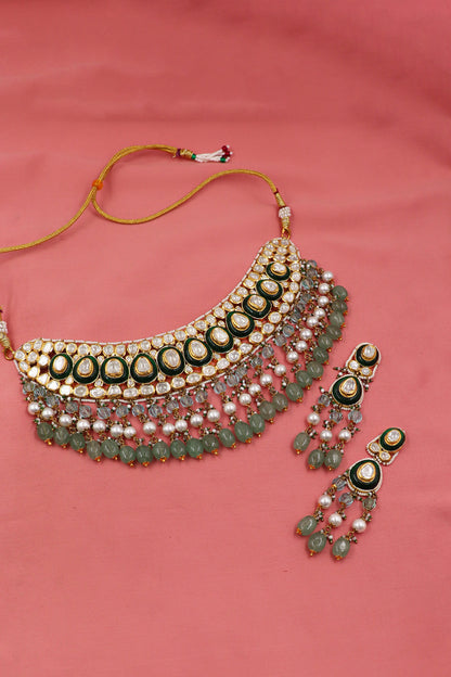 Gayatri Necklace :Gold Diamond Polki Jadau Traditional Necklace Set