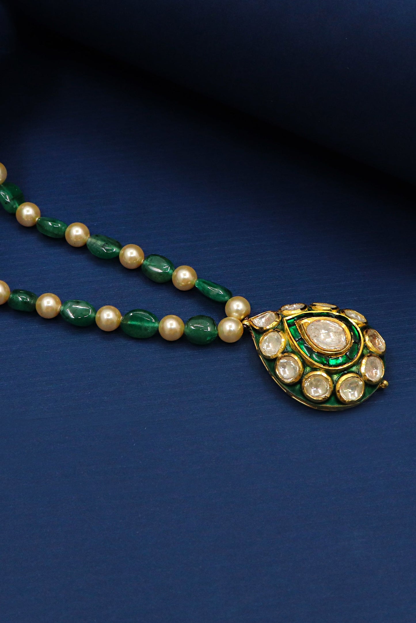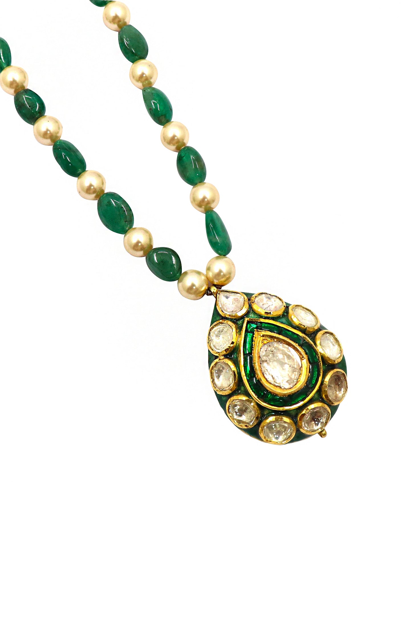 Deveshi Necklace: Pure Gold Emerald Pearl With Polki Diamond Minakari Jadau Necklace Jewelry